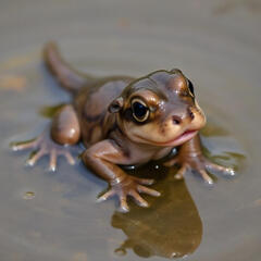 A small amphibious creature resembling a puppy with webbed feet and shiny skin. Puddle Pups love to splash and are known for their playful nature.Notes: