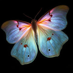 A large, moth-like creature with translucent wings that softly glow in pastel colors. Glowmoths flutter quietly and are drawn to calm environments. Their light has a relaxing effect on those nearby, often helping with sleep or easing anxiety.Notes: